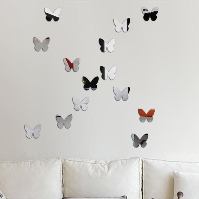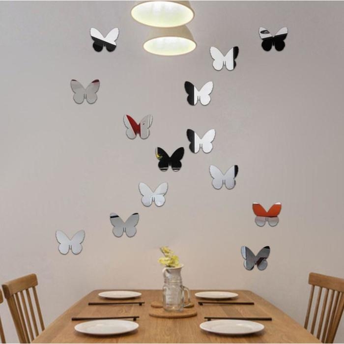 Наклейки интерьерные "Бабочки", зеркальные, декор на стену, набор 20 шт