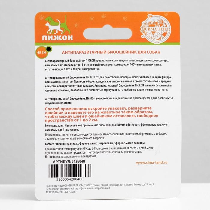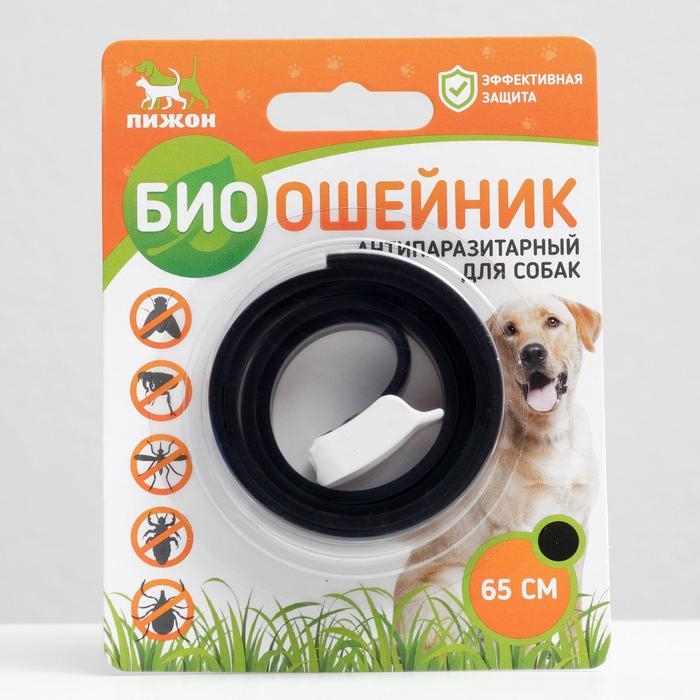 Биоошейник от паразитов "ПИЖОН" для собак от блох и клещей, чёрный, 65 см