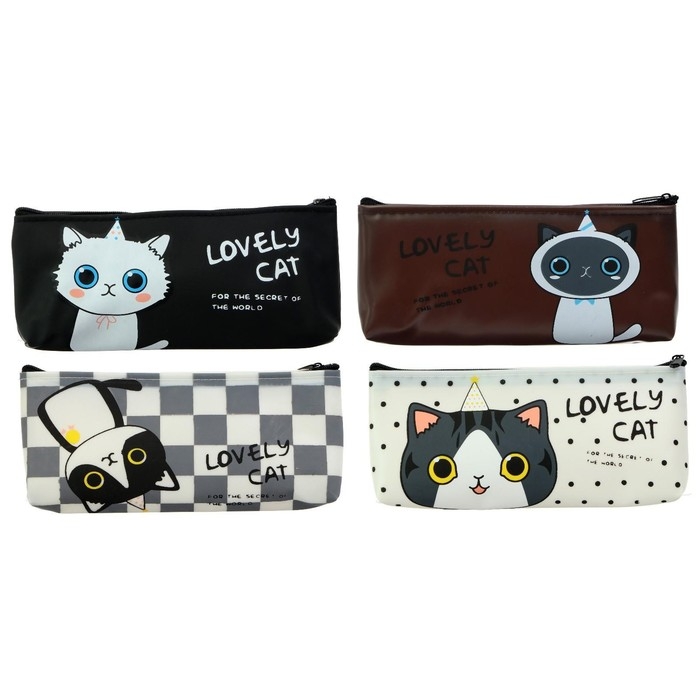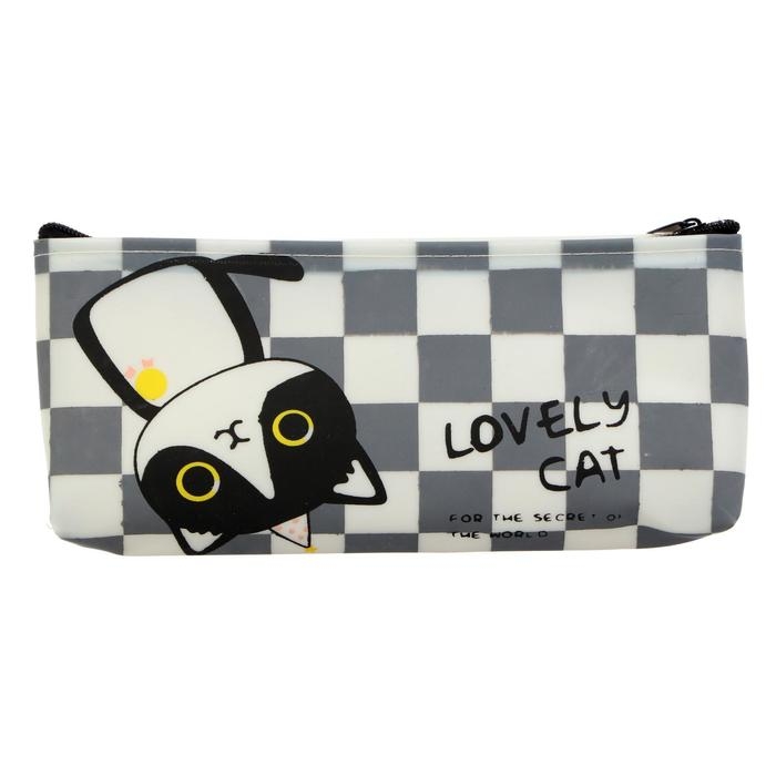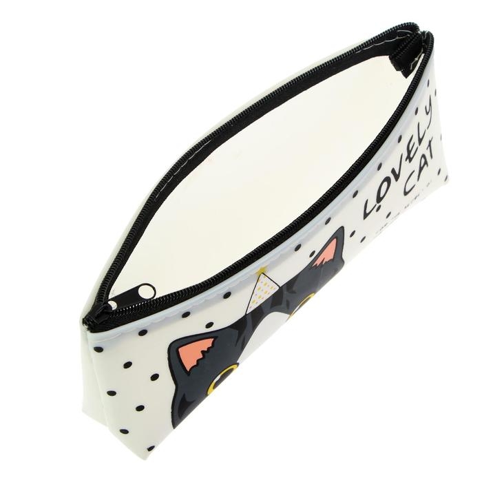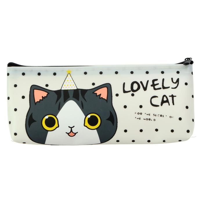 Пенал школьный на молнии силиконовый "Котик", МИКС