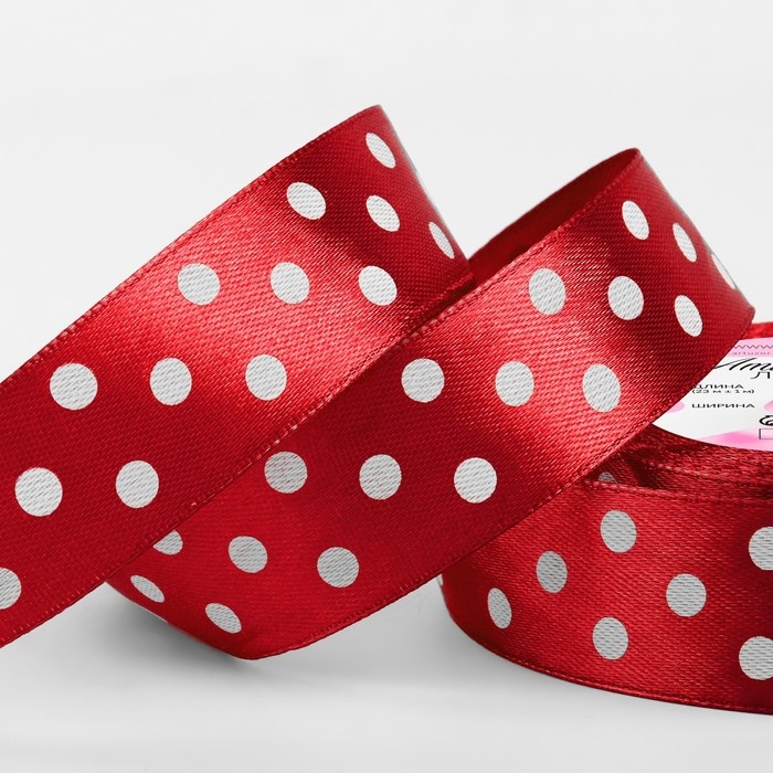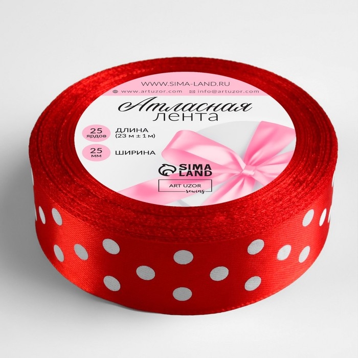 Лента атласная «Горошек», 25 мм × 23 ± 1 м, цвет красный №026