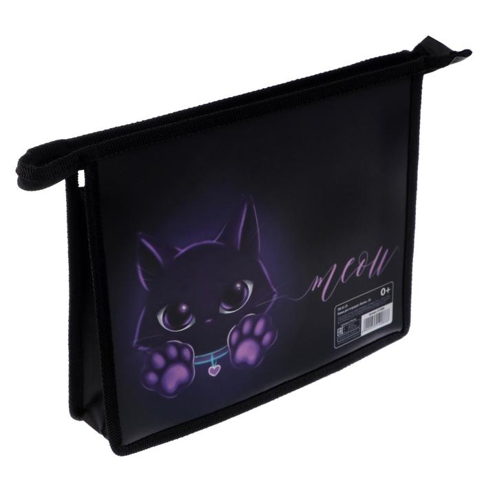 Папка для тетрадей А5, 230 х 190 х 50 мм, молния сверху, пластиковая, Calligrata "Котик"