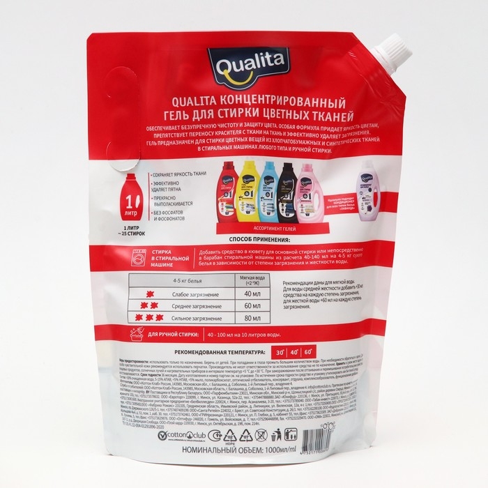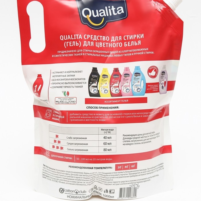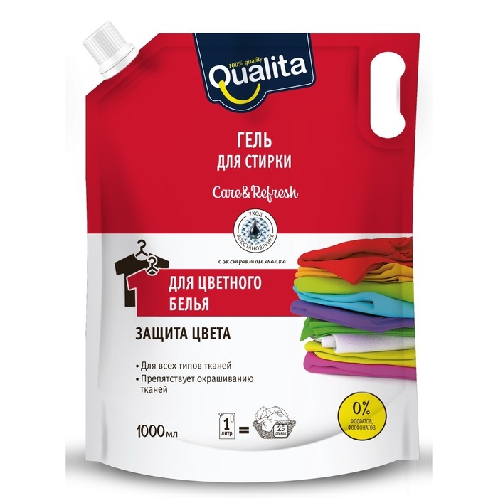 Гель для стирки, QUALITA, для стирки цветного белья, дой-пак, 1000 мл
