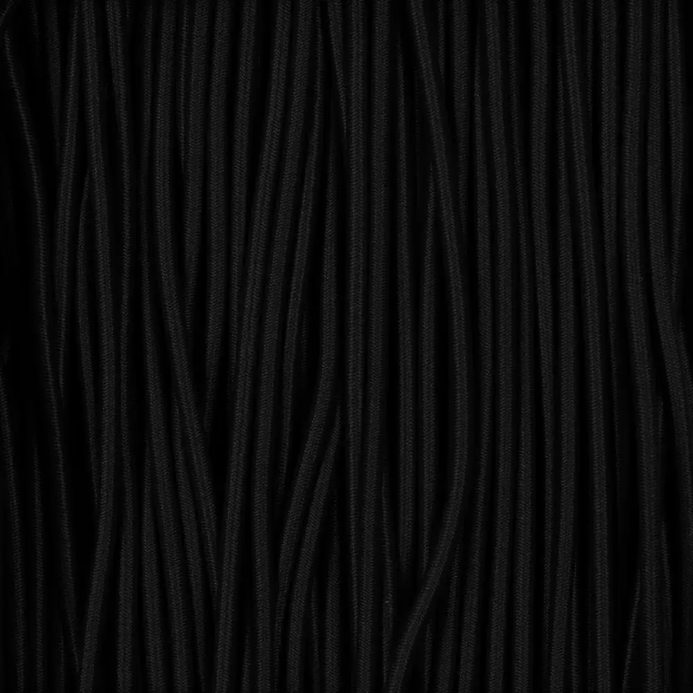 Резинка представляет собой пучок латексных нитей с внешней полиэфирной оплеткой. Такая конструкция обеспечивает плавное растяжение и защищает резинку от разрыва и повреждений.