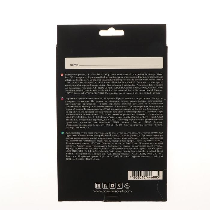 Карандаши цветные 18 цветов BlackWoodColor, пластиковые, трёхгранные, МИКС
