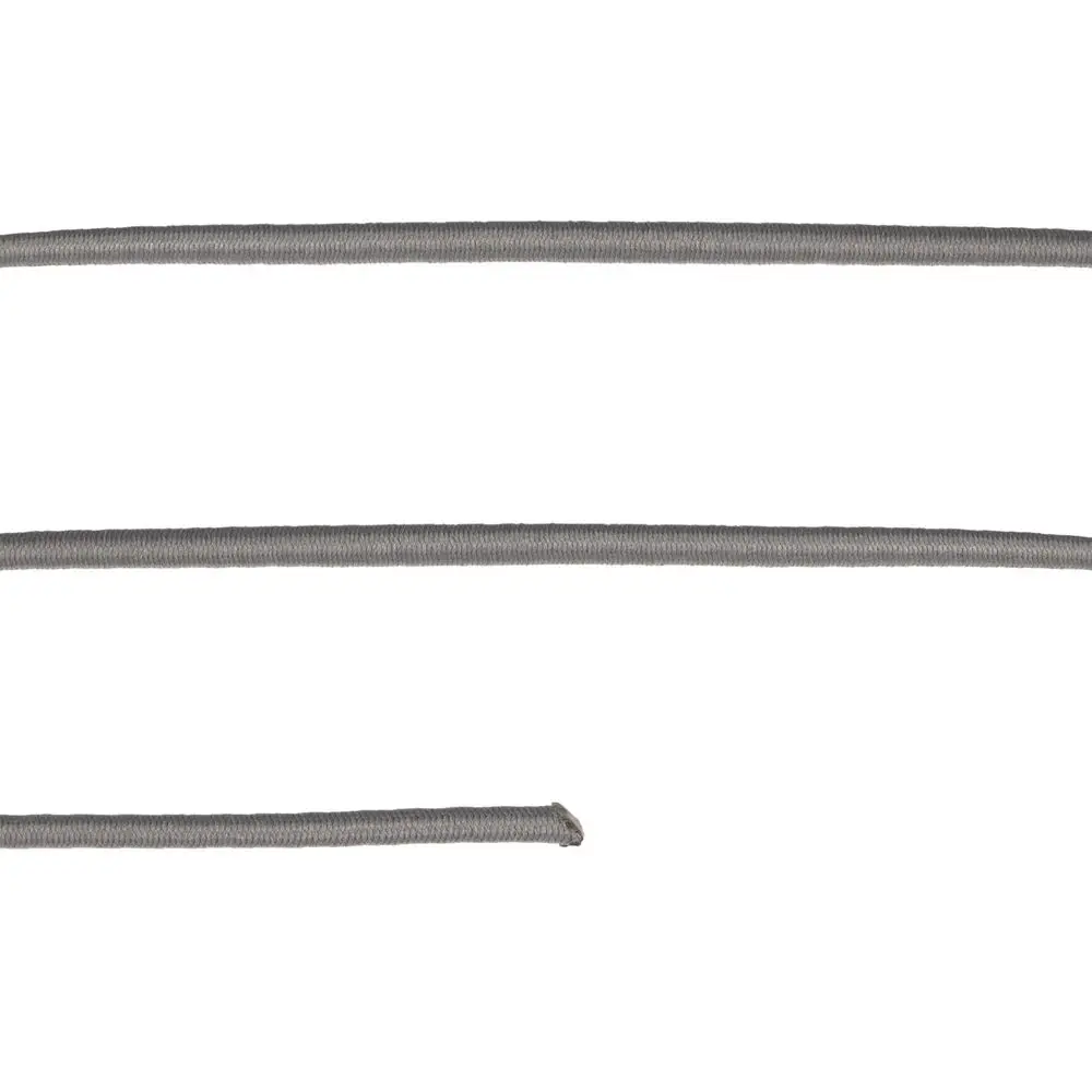 Резинка представляет собой пучок латексных нитей с внешней полиэфирной оплеткой. Такая конструкция обеспечивает плавное растяжение и защищает резинку от разрыва и повреждений.