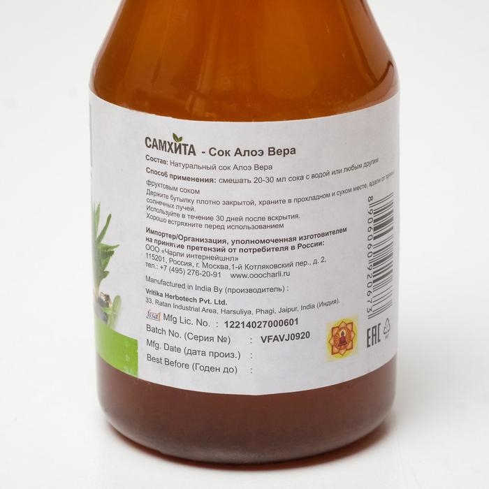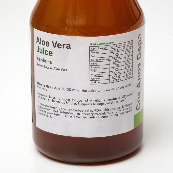 Сок Алоэ Вера богат такими витаминами как А, В1, В2, В3, В6, В9, В12, С, Е, минералами (кальций, фосфор, калий, железо, натрий, хлор, марганец, магний, медь, хром, цинк), аминокислотами и ферментами необходимыми для надлежащего функционирования организма.