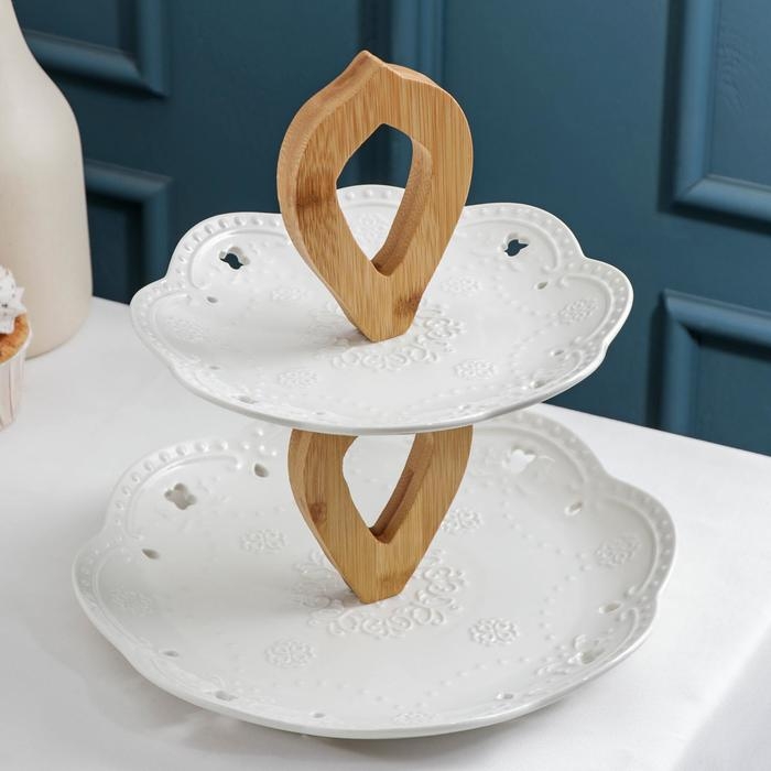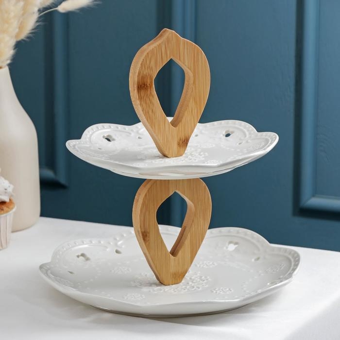 Блюдо керамическое 2-х ярусное Доляна «Сьюзен», 25×20×27 см, цвет белый