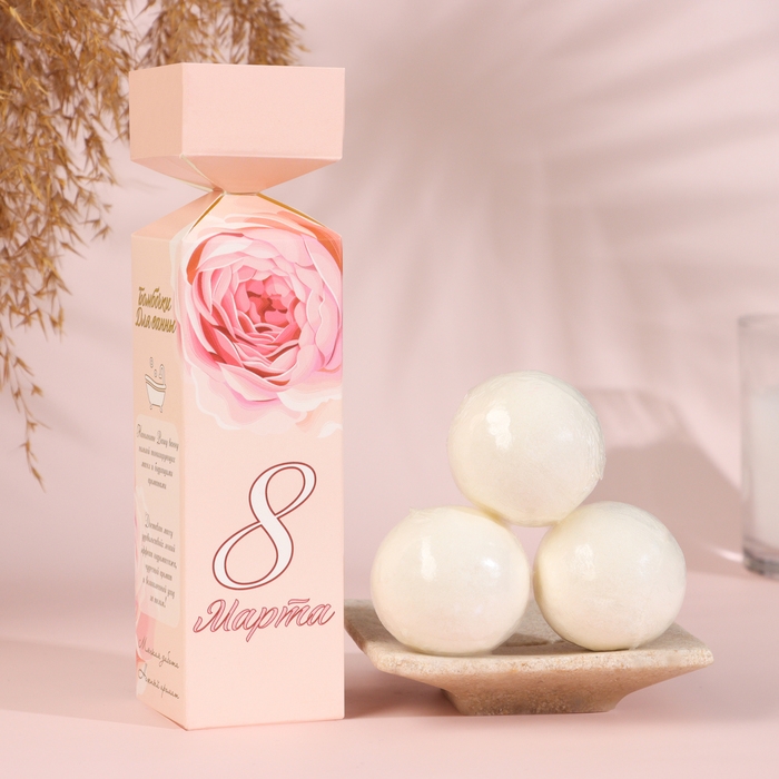 Бомбочки для ванны "С 8 марта, пионы", аромат печенья, 3 шт