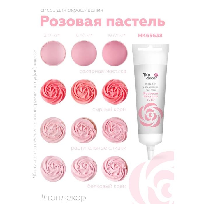 Пищевой краситель Top Decor гелевый «Розовый пастельный», 100 г