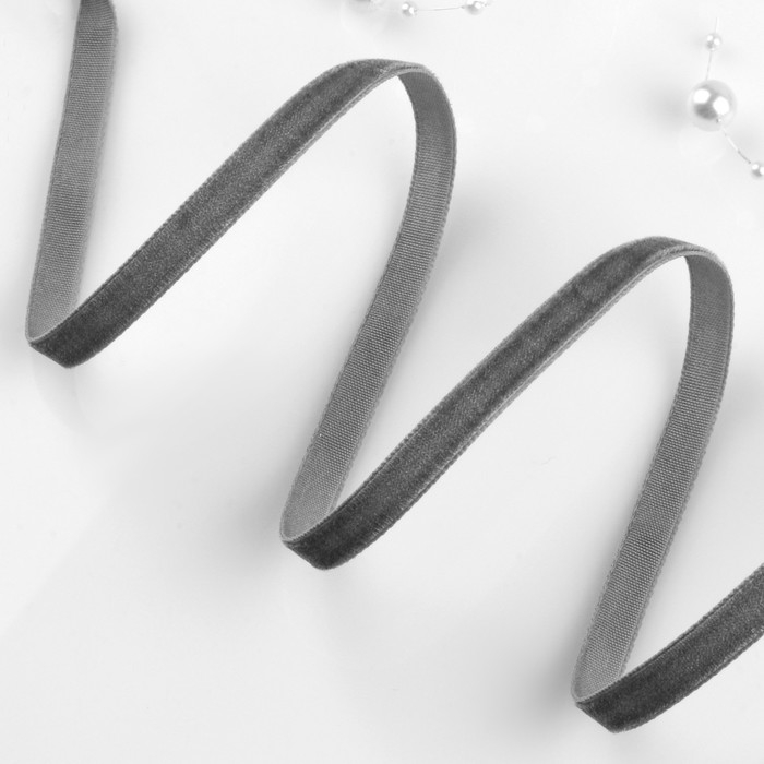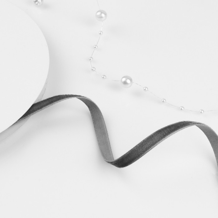 Лента бархатная, 6 мм, 18 ± 1 м, цвет серый №63