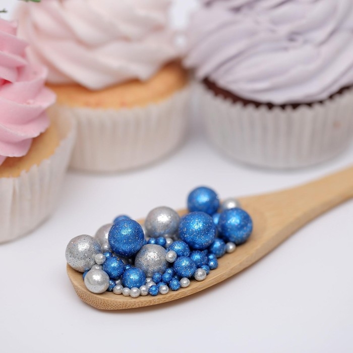 Посыпка кондитерская с мягким центром "Блеск": синяя, серебряная, 50 г
