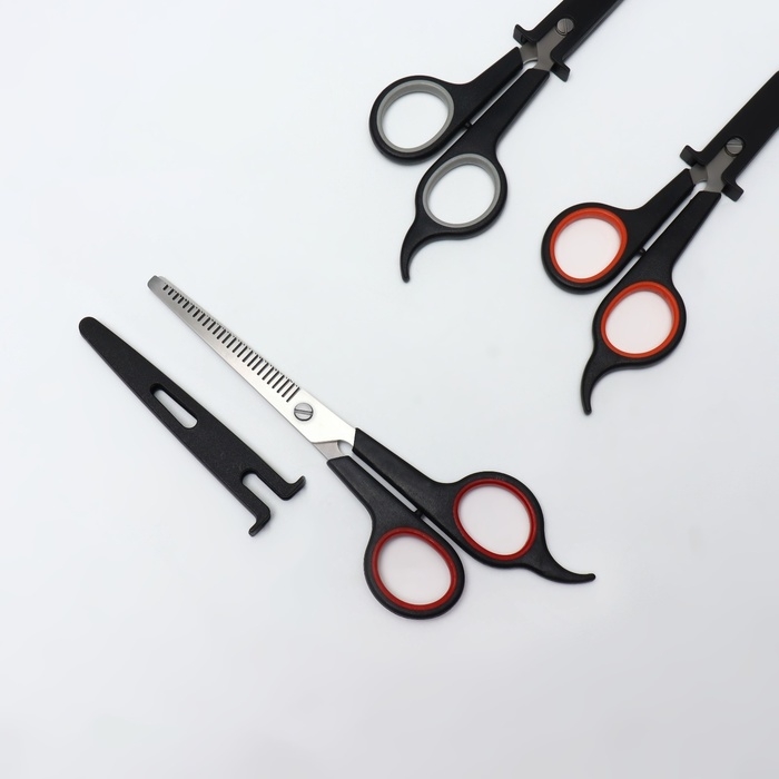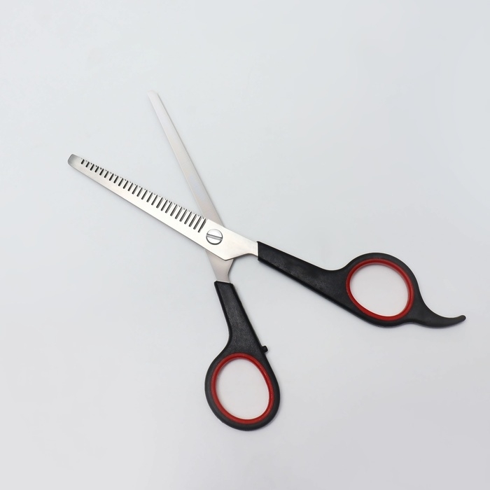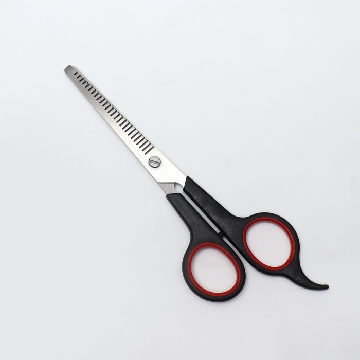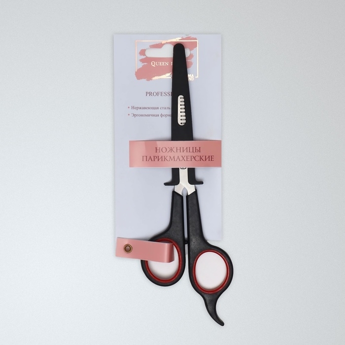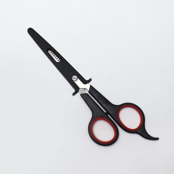 Ножницы парикмахерские с упором, лезвие — 7 см, цвет чёрный/красный