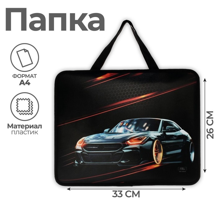 Папка с ручками А4, 330 х 260 х 75 мм, пластиковая, ручки-тесьма, Calligrata "Тачка"
