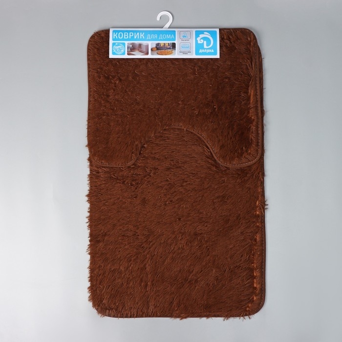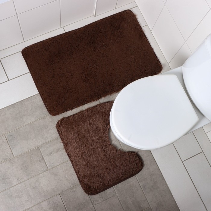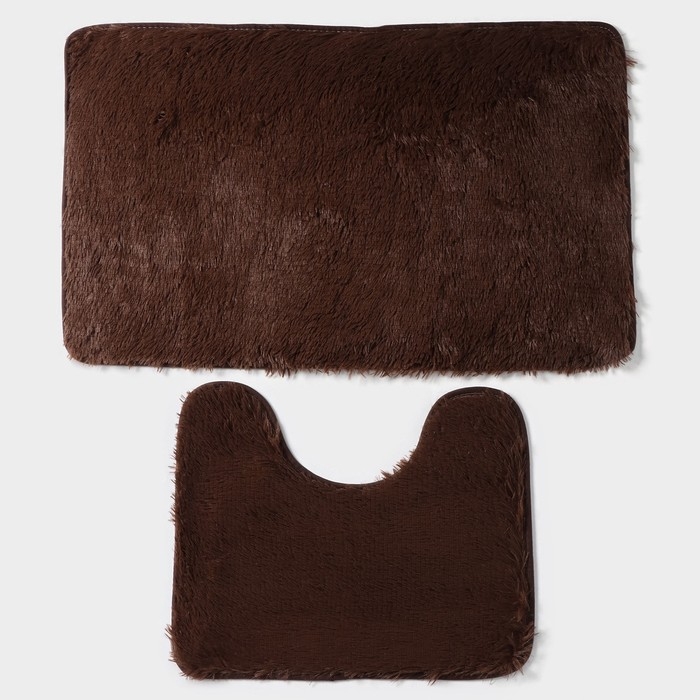 Коврики для ванной и туалета Доляна «Пушистик», 2 шт: 38×49 см, 49×79 см, цвет коричневый