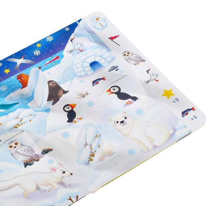 Книга сделана из плотного картона, поэтому прослужит долго. Внутри ребёнок найдёт 32 окошка с яркими изображениями животных. Также в книжке есть интересные задания, типа «Найди и покажи».