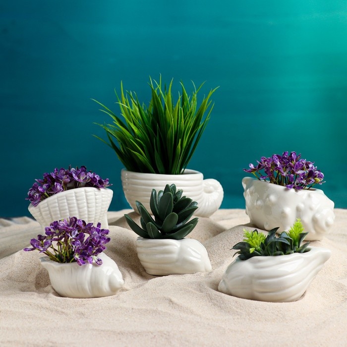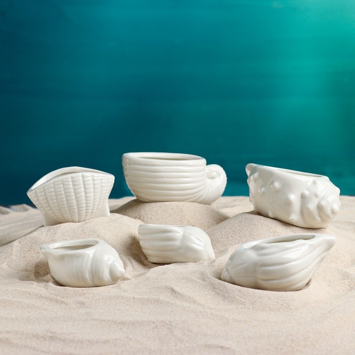 Набор кашпо "Ракушки" 6шт, 8х6х8см, белые