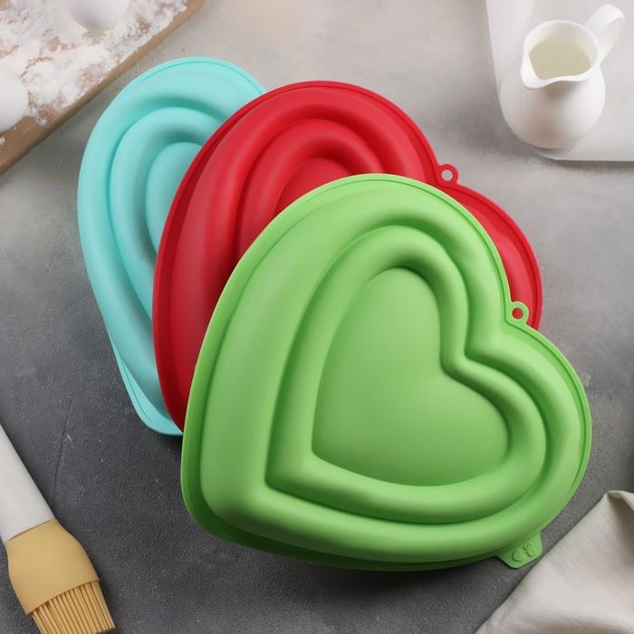 Форма для муссовых десертов и выпечки Доляна «Сердце», силикон, 22×20×7 см, цвет МИКС