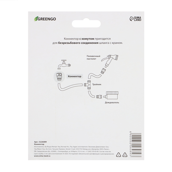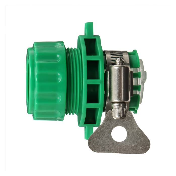 Коннектор, 3/4" (19 мм), с креплением на кран 3/4" (19 мм), с хомутом, пластик, резина, Greengo
