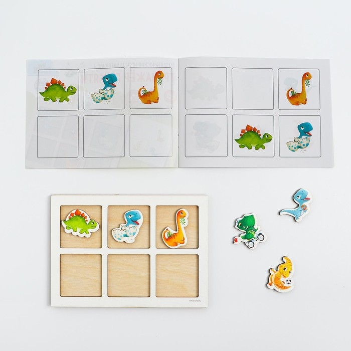 Откройте буклет со схемами, выберите одну и покажите ребёнку. Далее закройте картинку и попросите, чтобы он по памяти разместил детали в планшете как было показано на картинке.