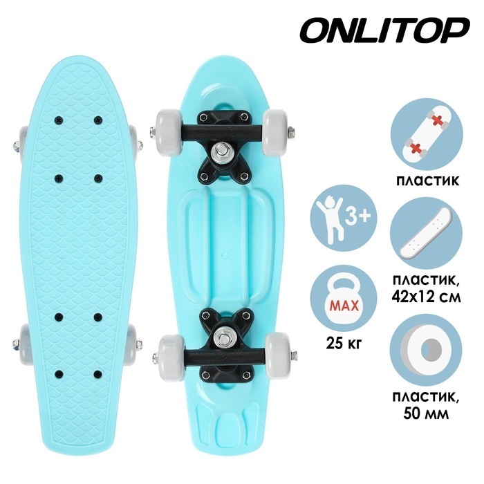 Пенниборд ONLITOP, 42х12 см, колёса PVC 50 мм, пластиковая рама, цвет голубой