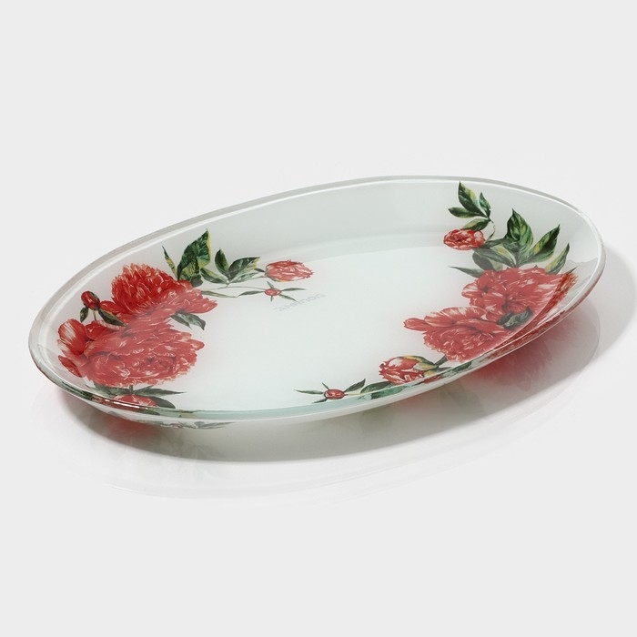 Блюдо стеклянное овальное Доляна «Пионы», 24,5×15×2 см