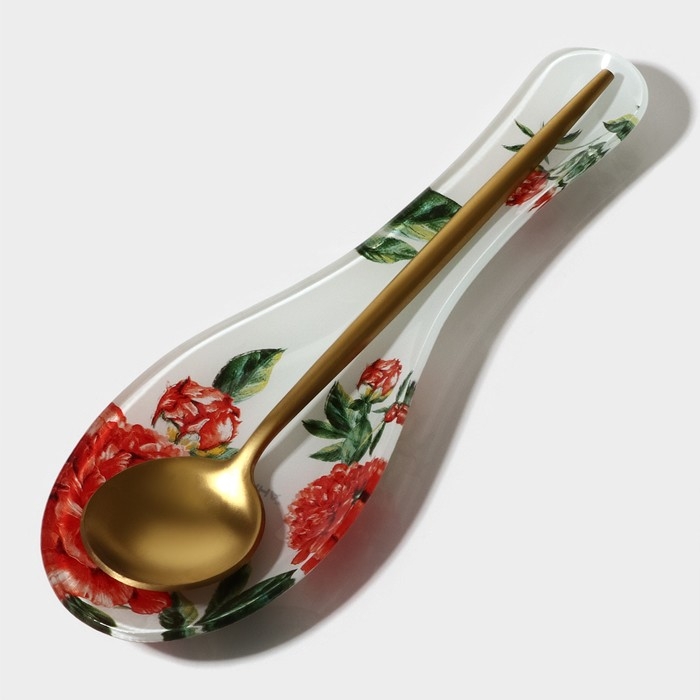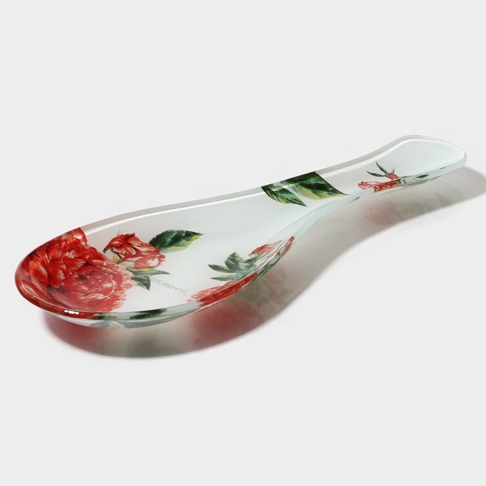 Подставка стеклянная под ложку Доляна «Пионы», 23,5×8,3 см