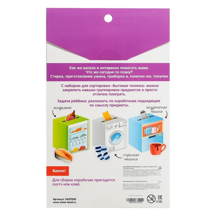 Сортер-копилка «Бытовая техника» положительно влияет на развитие у ребёнка мелкой моторики, логики и памяти. Он поможет малышу научиться сортировать предметы и запомнить их названия и значения.