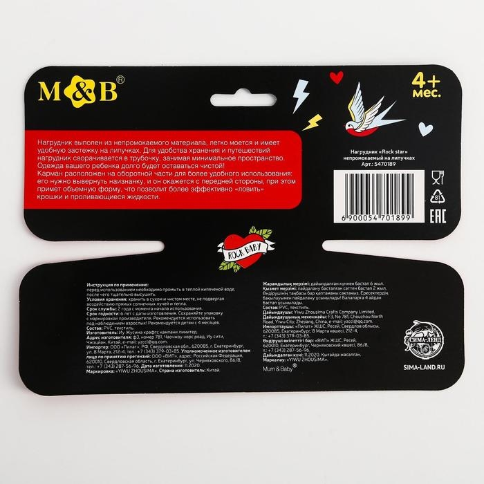 Нагрудник для кормления «Rock star» непромокаемый на липучке, с карманом