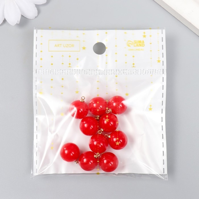 Декор для творчества пластик "Красный шарик с петелькой" набор 10 шт 1,2х1,2х1,4 см