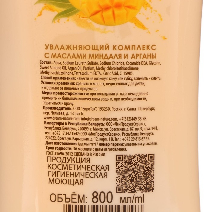 Гель для душа Dream Nature "Сочное манго" 800 мл