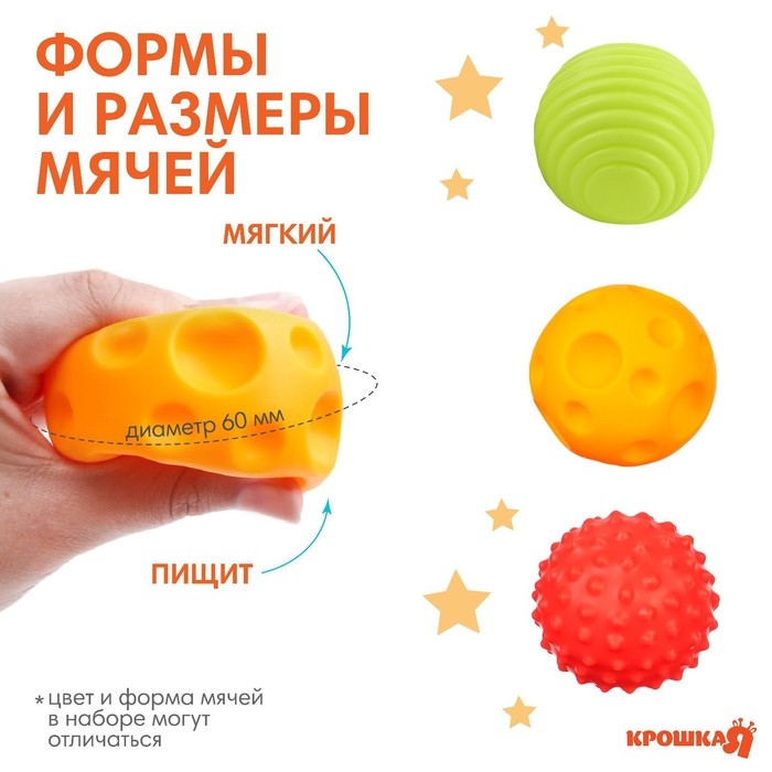 Набор развивающих тактильных мячиков «Лисенок Лёлик», с пищалкой, 3 шт, Крошка Я