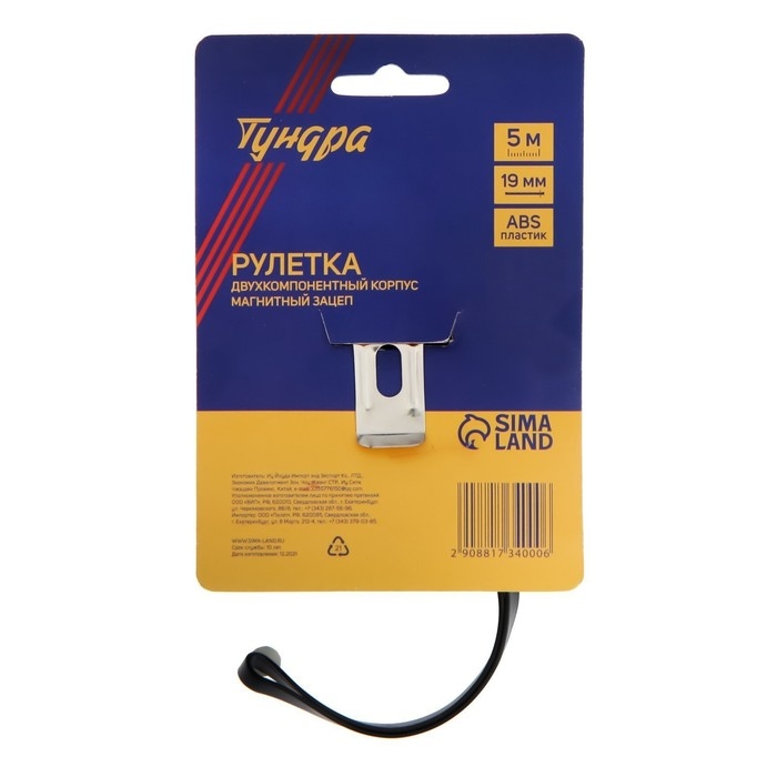 Рулетка ТУНДРА, двухкомпонентный корпус, 5 м х 19 мм