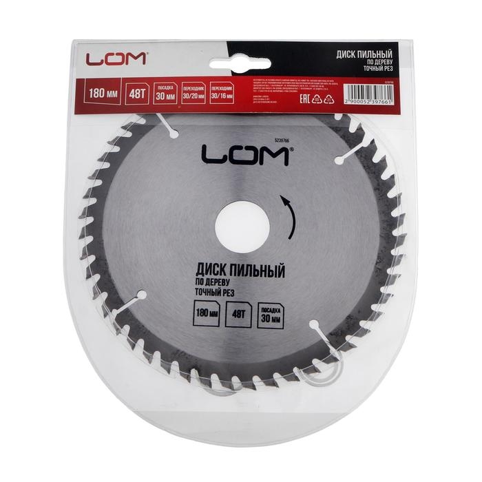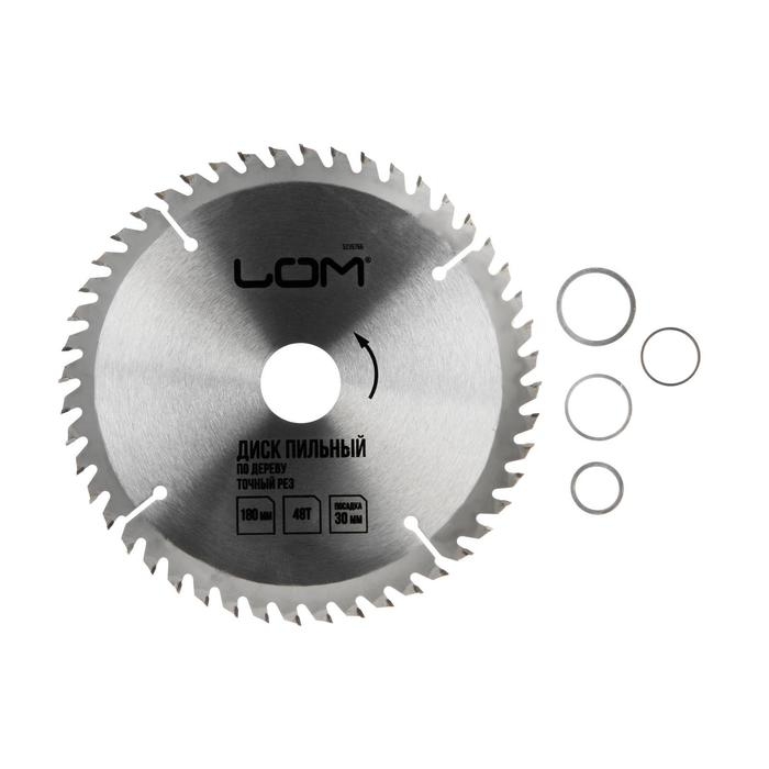 Диск пильный по дереву ЛОМ, точный рез, 180 х 30 мм (кольца на 20, 16), 48 зубьев
