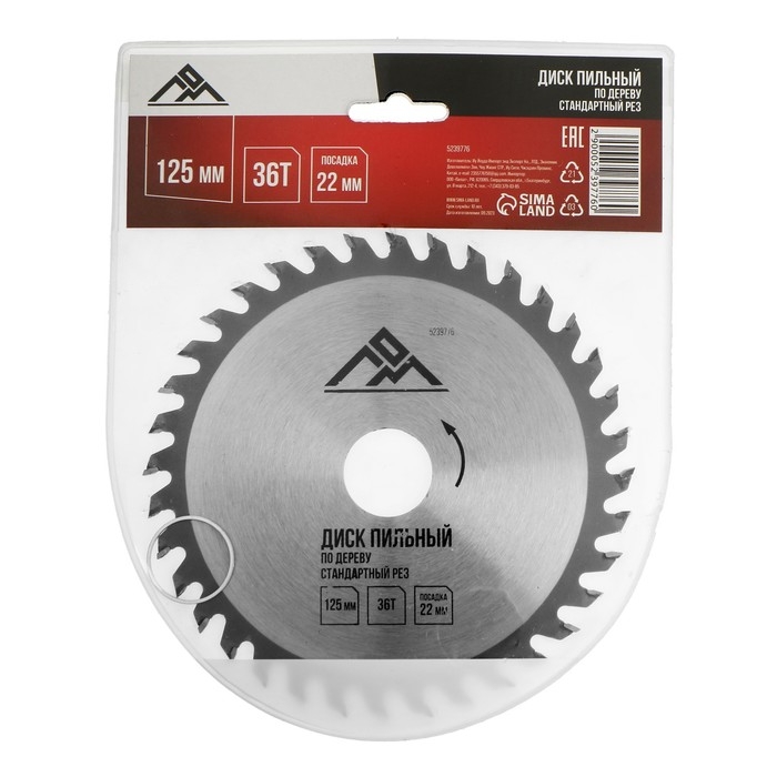 Диск пильный по дереву ЛОМ, стандартный рез, 125 х 22 мм, 36 зубьев