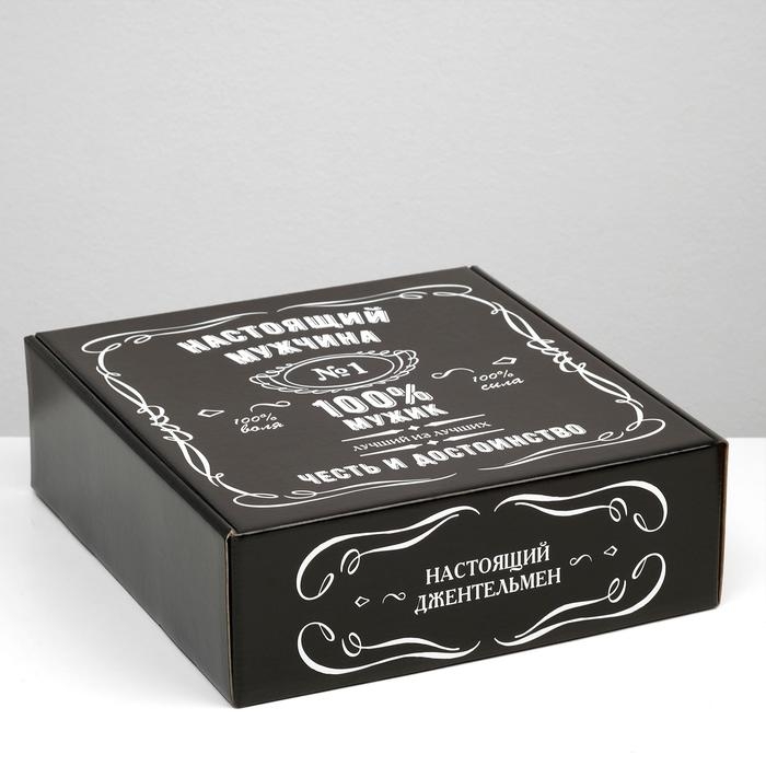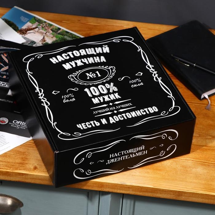 Подарочная коробка "100% Мужик", чёрный, 28,5 х 9,5 х 29,5 см