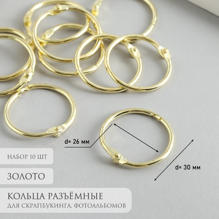 Кольца для творчества (для фотоальбомов) "Золото" внутр. d= 2,6 см внешн. d=3 см набор 10 шт