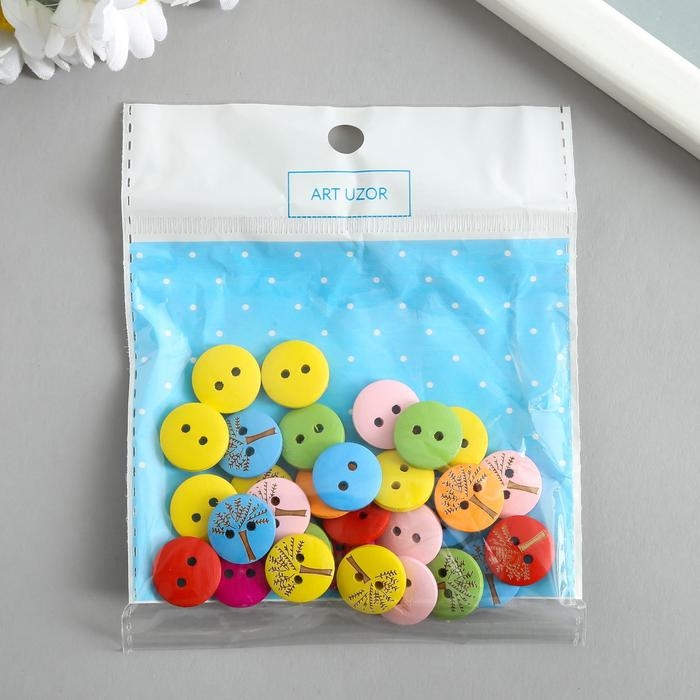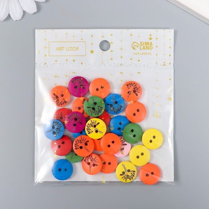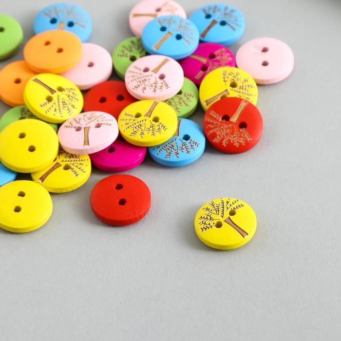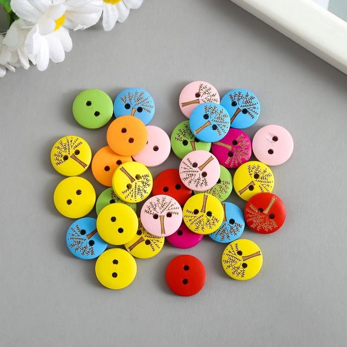 Пуговицы дерево для творчества 2 прокола "Деревце" набор 30 шт 1,5х1,5х0,3 см МИКС