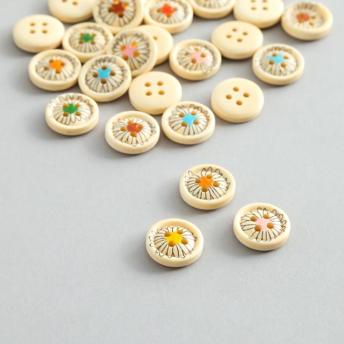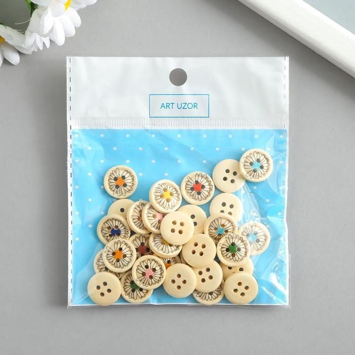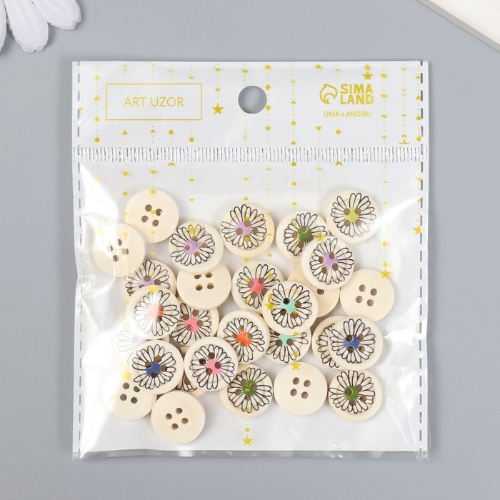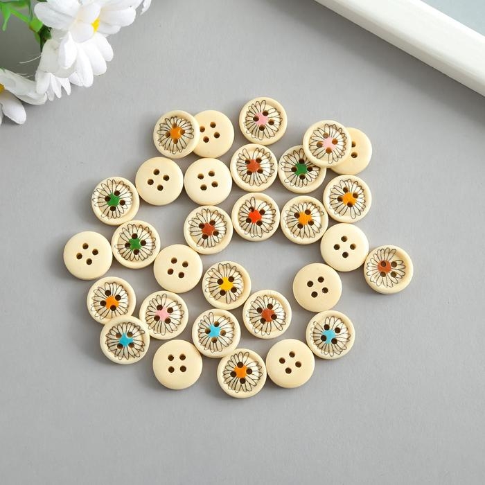 Пуговицы дерево для творчества 4 прокола "Ромашка с яркой серединой" н-р 30шт 1,5х1,5х0,3 см
