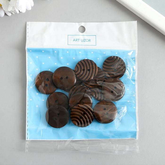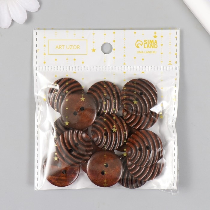 Пуговицы дерево для творчества 2 прокола "Барханы" набор 15 шт 2,5х2,5х0,4 см
