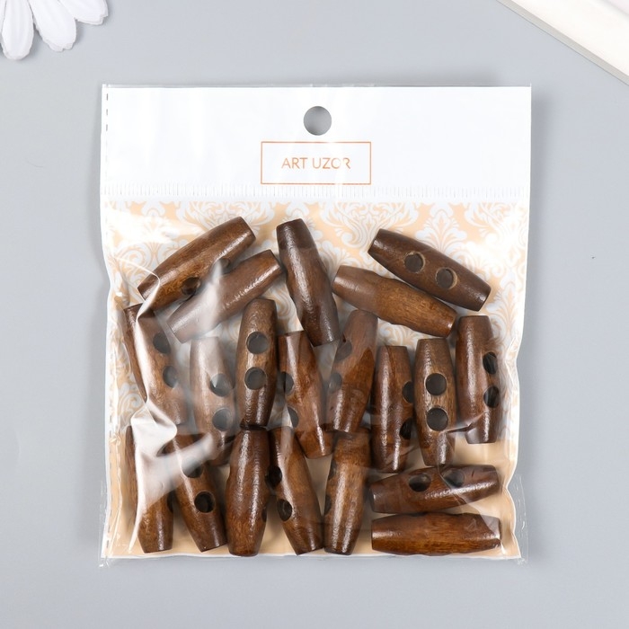 Пуговицы дерево для творчества 2 прокола "Цилиндр" набор 20 шт 4х1,1х1,1 см