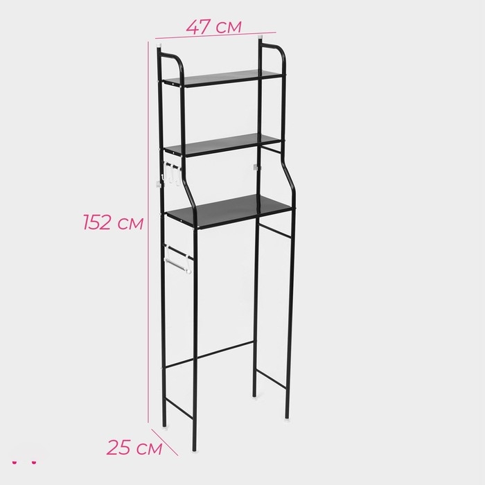 Стеллаж над унитазом, 47×25×152 см, цвет чёрный
