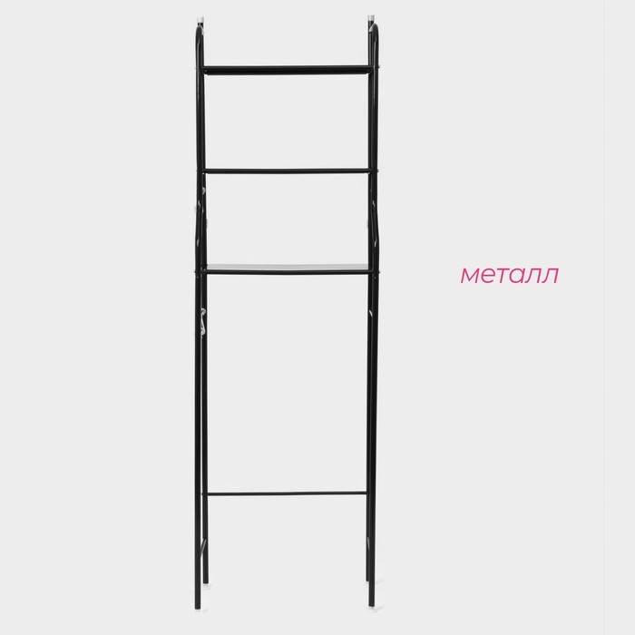 Стеллаж над стиральной машинкой со штангой для сушки, 66×25×175 см, цвет чёрный