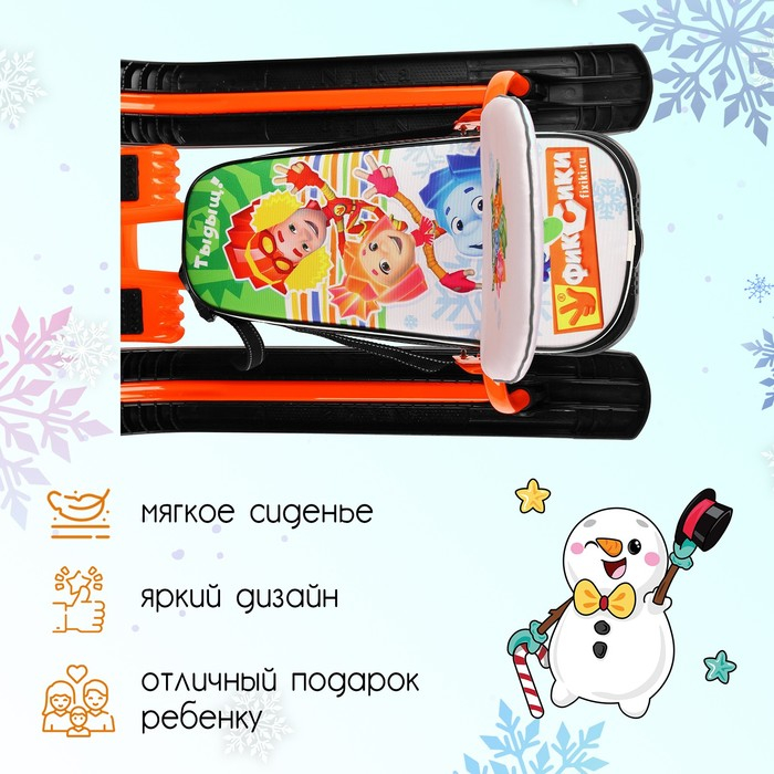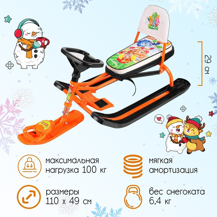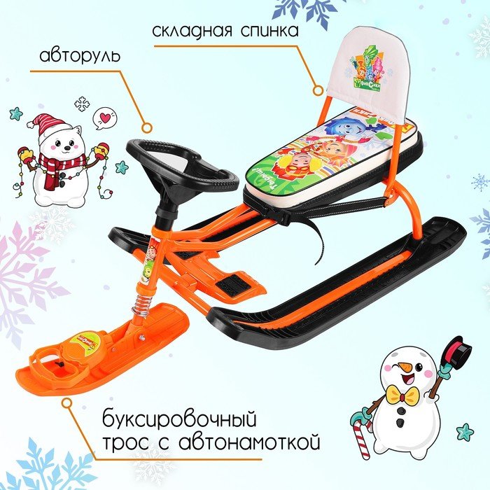 Снегокат «Тимка спорт 4-1 Фиксики», ТС4-1/Ф12, со спинкой и ремнём безопасности, цвет оранжевый/чёрный