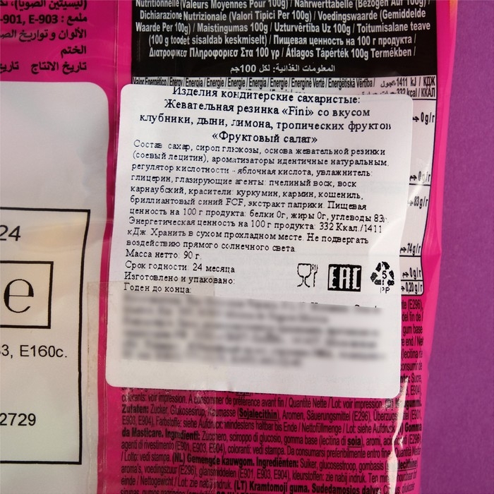 Жевательная резинка FINI «Фруктовый салат», 100 г