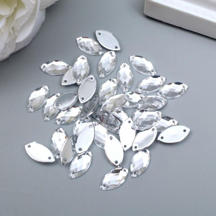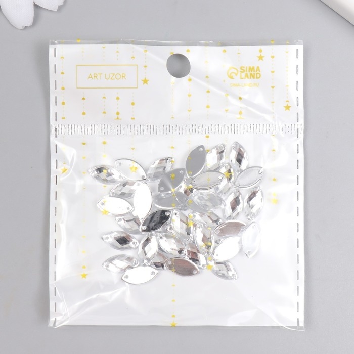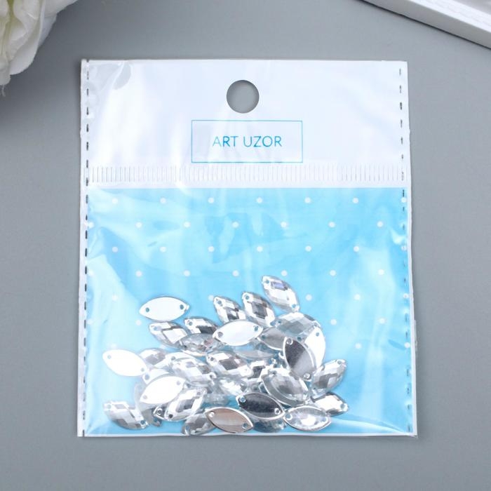 Декор для творчества пластик пришивной "Листик" серебро набор 40 шт 1х0,6х0,3 см