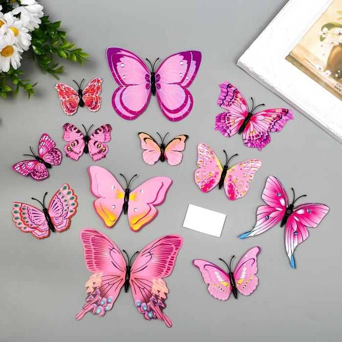 Магнит пластик "Бабочки светло-розовые" набор 12 шт
