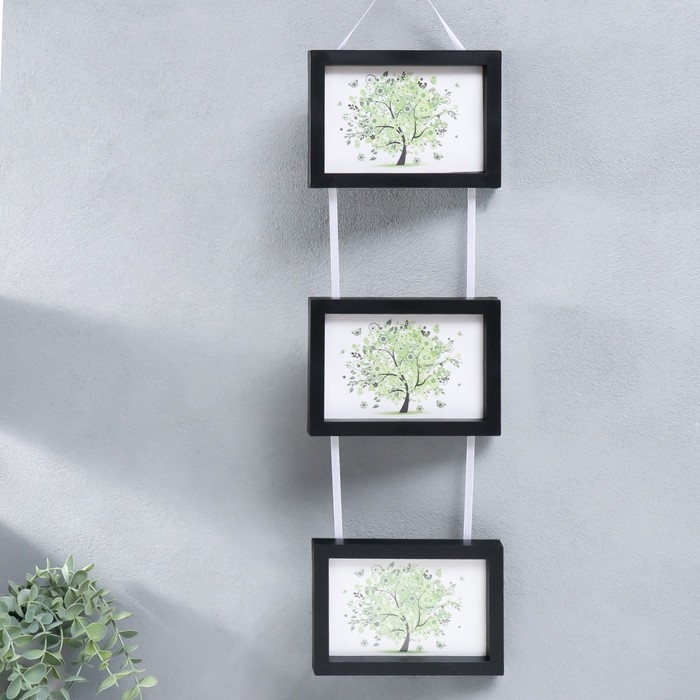 Фоторамка тройная на тесьме L-3 10х15 см черный (пластиковый экран)
