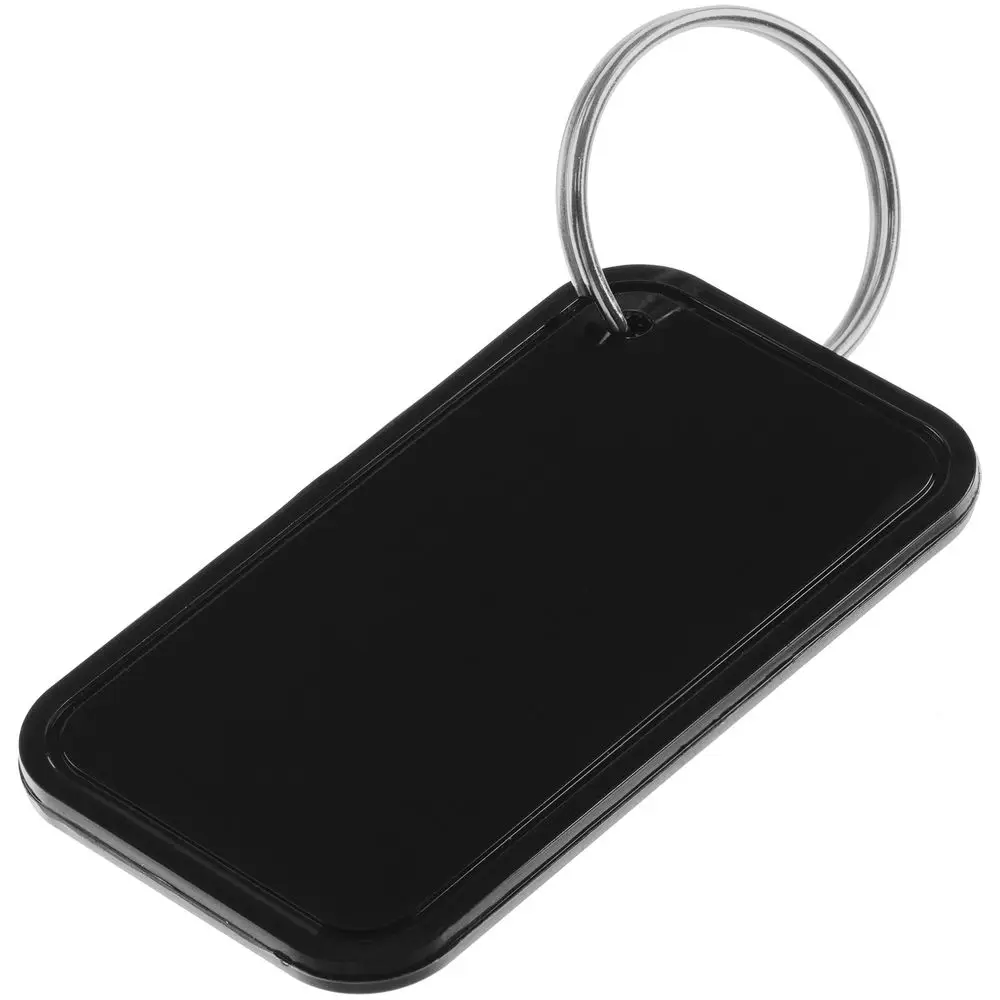 Лаконичный брелок из полипропилена с металлическим кольцом.
