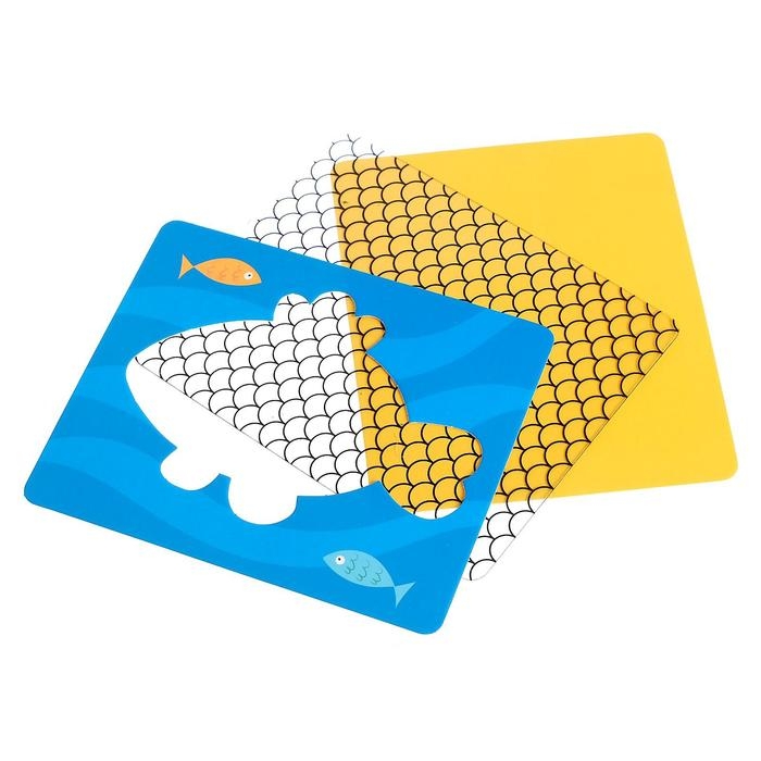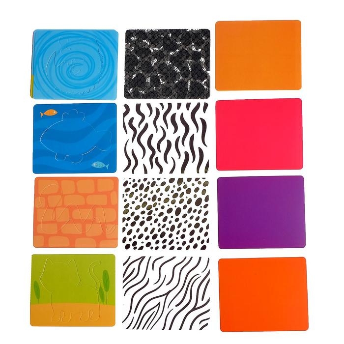 - У животных на теле есть пятна, узоры, текстура. Расскажите об этом ребёнку. Пусть он разместит карточку-узор между цветом и контуром, как показано на фото.