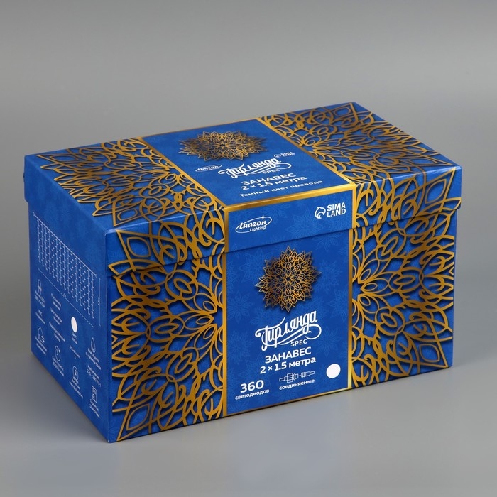 Гирлянда «Занавес» 2 × 1.5 м, IP44, УМС, тёмная нить, 360 LED, свечение белое, 220 В